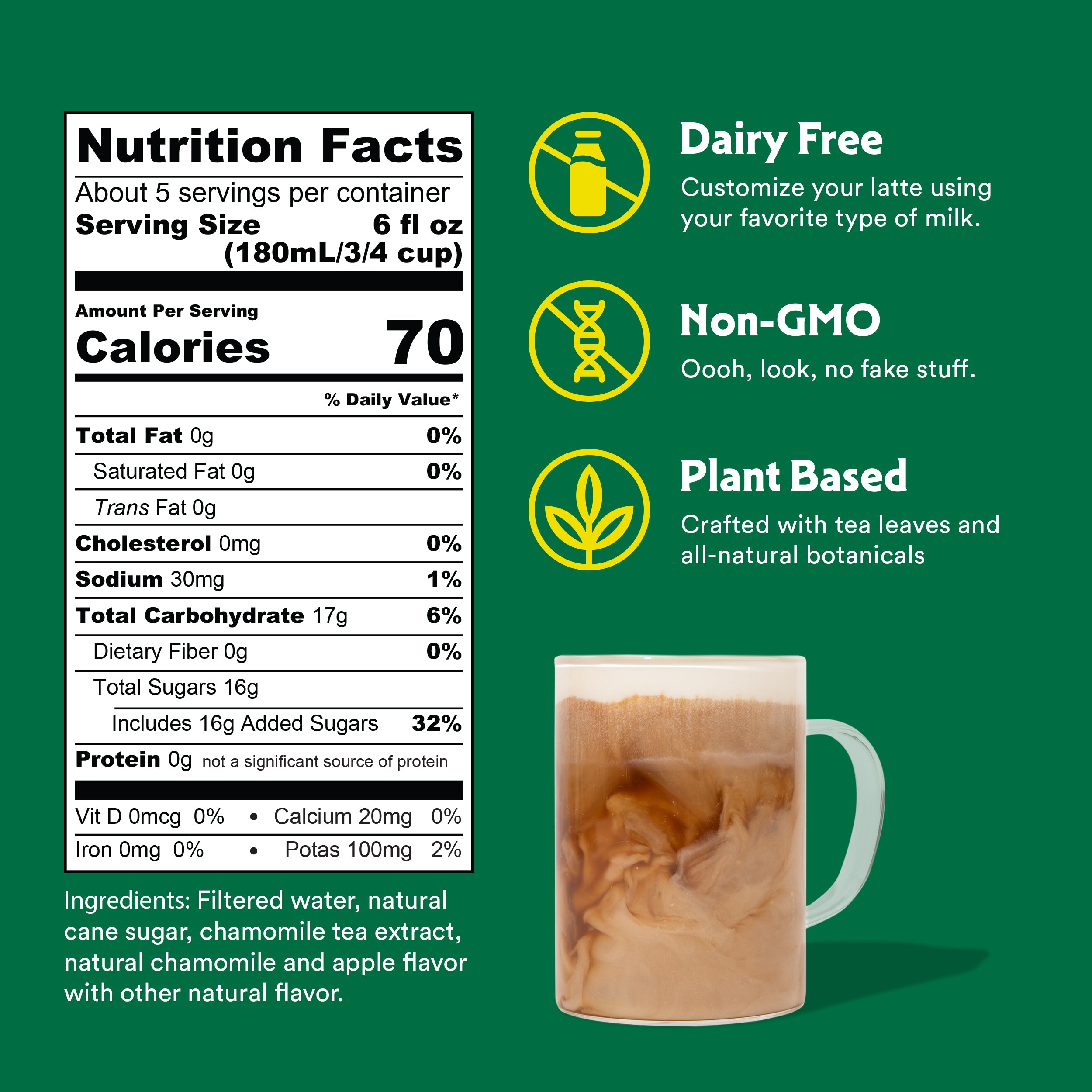 • Filtered water, natural cane sugar, chamomile tea extract, natural chamomile and apple flavor with other natural flavor.