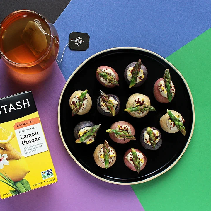 Do you want a quick easy snack? Or perhaps you’re throwing a garden tea party? Cucumber sandwiches have you covered for both! Pair these teeny-tiny finger sandwiches with our Peach Black Tea for a refreshing and delicious match. Here is how to make a cucumber sandwich. Start by peeling the cucumber, cutting it into thin slices, then dry the slices between 2 paper towels. Mix the cream cheese, mayo, seasonings and herbs together. Spread the mixture on some of that crustless white bread, add cucumber slices, place bread on top, and cut. Serve with Peach Black Tea brewed for 3 minutes and enjoy this quick snack recipe!